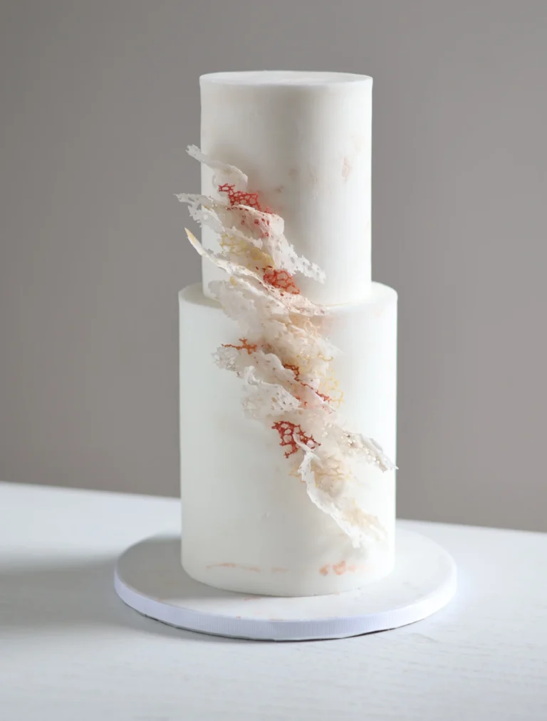 To emphasise the uniqueness and unrepeatability of the cake, I can add edible wafers or sugar flowers.